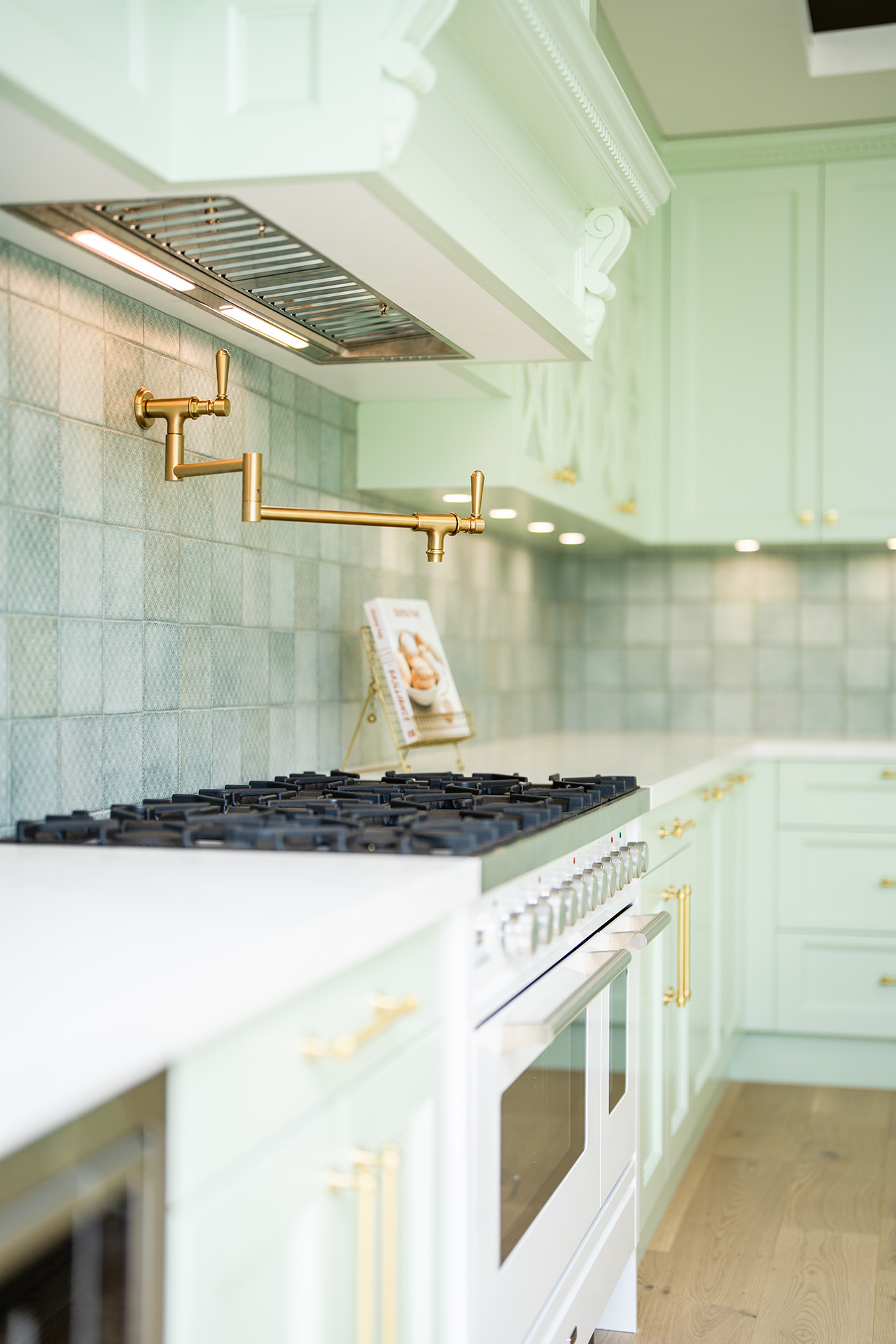 A French Provincial kitchen in shades of green exudes rustic charm and elegance. Soft, muted greens paired with vintage fixtures and natural wood elements can create a space reminiscent of the French countryside.